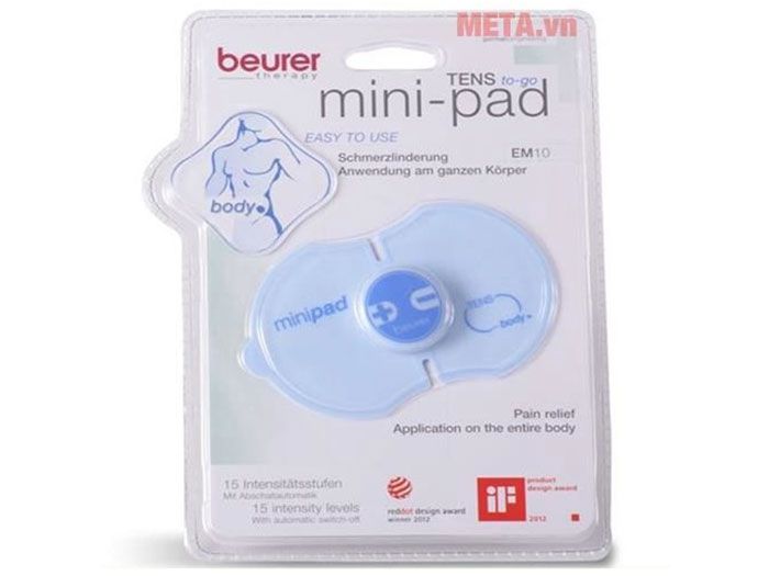 Máy massage điện xung trị đau mỏi lưng Beurer EM10 mini ứng dụng massage thư giãn, tinh tế sử dụng công nghệ TENS (kích thích điện) dễ dàng sử dụng ở tất cả các vùng bị đau. Các miếng dán điện xung tự dính là một cách an toàn và dễ dàng làm giảm sự khó chịu và cứng khớp do lối sống hiện đại.