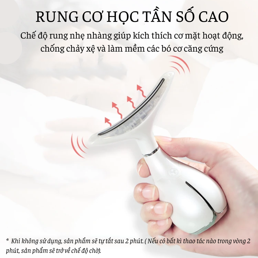 2. RUNG CƠ HỌC VỚI TẦN SỐ CAO: Chế độ rung nhẹ nhàng giúp kích thích cơ mặt hoạt động, chống chảy xệ và làm mềm các bó cơ căng cứng. Đồng thời, rung hỗ trợ mở rộng lỗ chân lông để serum, kem dưỡng thẩm thấu nhanh và sâu hơn. Tạo ra các rung động giúp thư giãn cơ bắp, cải thiện tuần hoàn máu và tăng cường sự hấp thụ dưỡng chất từ các sản phẩm chăm sóc da.