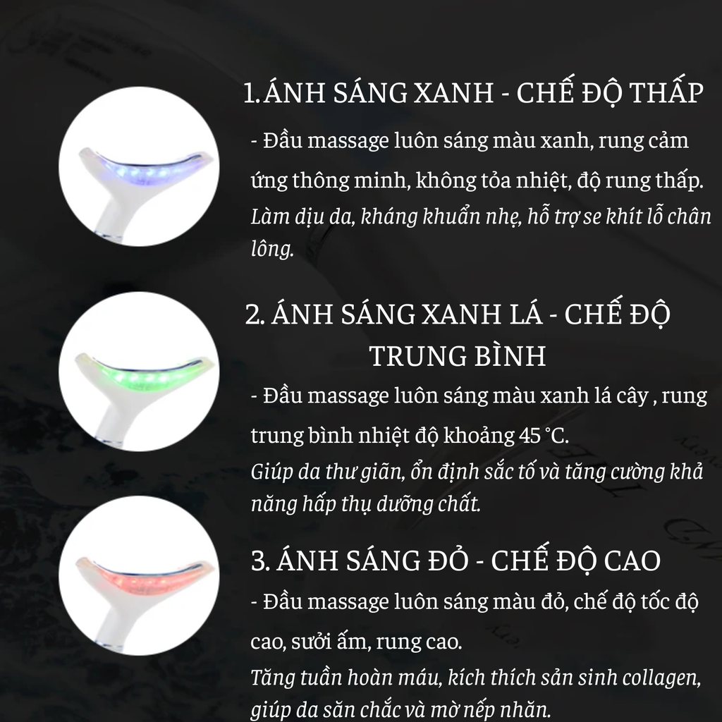 - Bước 2: Chọn chế độ: Bật máy và chọn chế độ ánh sáng/rung/nhiệt phù hợp với nhu cầu của bạn.