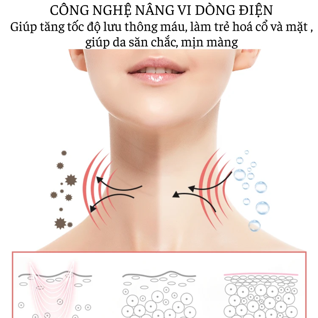 3. CÔNG NGHỆ NÂNG VI DÒNG ĐIỆN: Công nghệ này sử dụng dòng điện cực nhỏ mô phỏng xung điện sinh học tự nhiên trong cơ thể, tác động trực tiếp lên các nhóm cơ dưới da. Khi tiếp xúc, vi dòng điện giúp: