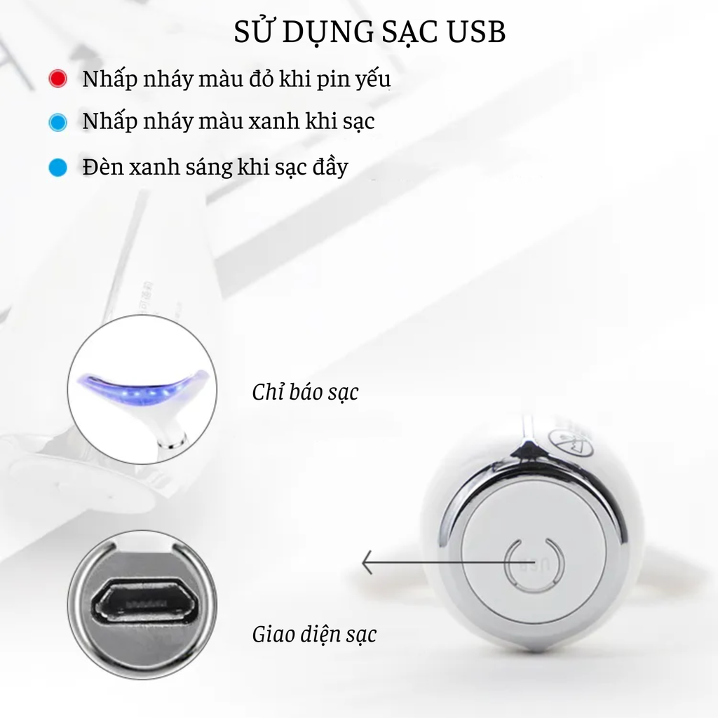 5. THIẾT KẾ SẠC USB HIỆN ĐẠI: chỉ cần cắm và rút đơn giản là có thể sử dụng ngay, không gây vướng víu hay gián đoạn trong lúc massage. Bạn có thể sạc bằng adapter, laptop, pin dự phòng… cực kỳ linh hoạt. Thiết kế này giúp việc chăm sóc da trở nên thoải mái và thuận tiện ở bất cứ đâu.