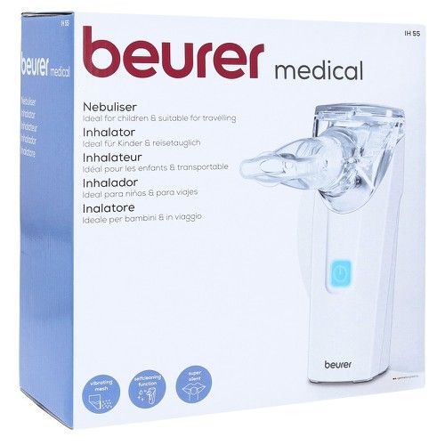 Máy xông khí dung Beurer IH55 có nhiệm vụ chuyển đổi các loại thuốc kháng sinh thành các hạt sương có kích thước siêu nhỏ, len lỏi vào sâu phế quản, phế nang hoặc vùng bị tổn thương để điều trị các bệnh về đường hô hấp nhanh chóng và mang lại hiệu quả tối ưu.