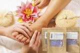 - Muối biển kết hợp Tinh dầu oải hương sẽ thẩm thấu nhanh qua da kích thích huyệt đạo, giúp làm lưu thông huyết mạch làm cho các cơ năng ở bàn chân dãn ra một cách mềm mại, có tác dụng giảm các triệu chứng đau nhức, mỏi chân, giảm đau khớp.